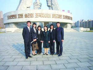 田明房間的朝鮮大學生是金亨稷師范大學大四學生。由于朝鮮的男子都要服10年兵役,所以他們上大學一般都30歲左右了。這位朝鮮大學生會大致留意一下留學生們的日常生活,但絕對不像某些傳言那樣監(jiān)視留學生的日常行動。他十分熱情地幫助留學生學習朝鮮語,跟所有留學生都是朋友。