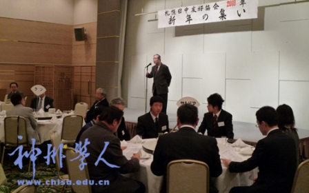 2010年1月16日,札幌市內(nèi)銀裝素裹。受札幌日中友好協(xié)會(huì)邀請(qǐng),北海道中國(guó)學(xué)友會(huì)會(huì)長(zhǎng)黨志勝、副會(huì)長(zhǎng)宋寧、石光及干事長(zhǎng)、副干事長(zhǎng)共六人代表留學(xué)生參加了在札幌舉辦的新年懇請(qǐng)會(huì)。參加這次新年會(huì)的還有中國(guó)駐札幌總領(lǐng)館徐愛(ài)平領(lǐng)事、札幌大學(xué)孔子學(xué)院學(xué)院長(zhǎng)張偉雄、北海道日中友好協(xié)會(huì)、北海道華僑華人連合會(huì)、小樽日中友好協(xié)會(huì)、惠庭日中友好協(xié)會(huì)、日中交流の會(huì)、北海道后生勞動(dòng)省北海道勞動(dòng)局、晉南貿(mào)易(株)代表取締役等民間團(tuán)體和企業(yè)代表60余人。