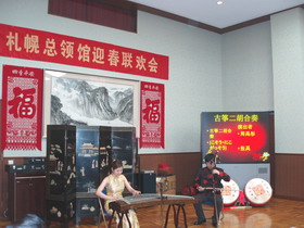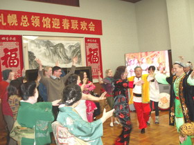 紅紅的燈籠、大紅的“!弊,把總領(lǐng)館裝飾得紅紅火火,充滿著濃濃的年味。北海道的中國(guó)留學(xué)生及當(dāng)?shù)靥匮钨e兩百多人歡聚一堂,共慶中華民族傳統(tǒng)佳節(jié)。