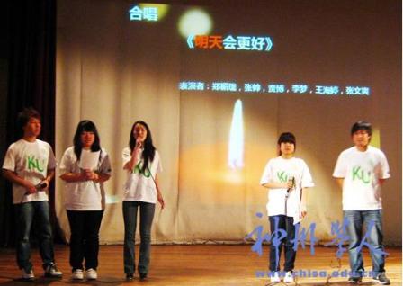 在中國駐韓大使館教育處的領(lǐng)導和在韓中國留學生聯(lián)合會的號召下,由建國大學學生會籌劃舉辦的“情系玉樹”,即建國大學留學生為玉樹災區(qū)人民祈福募捐晚會,于4月28號在建國大學學生會館小禮堂莊嚴舉行。