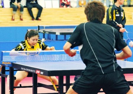 中新網(wǎng)5月7日電 據(jù)日本新華僑報網(wǎng)報道,為獲得即將在俄羅斯莫斯科即將開幕的第50屆世界乒乓球錦標賽參賽權(quán),5月6日,日本選手在東京味之素國家訓(xùn)練中心,舉行了模擬假想敵的公開訓(xùn)練。其中,能說一口流利的漢語,深受中日人民喜愛的日本乒乓名將福原愛,則視羅馬尼亞一號主力丹妮拉·多德安為預(yù)選賽階段最大的對手。為此,她選擇了一名男陪練,專門模仿丹妮拉·多德安的打法。身高170cm的丹妮拉·多德安擅長削球,過去曾在比賽中與身高僅有156cm的福田愛交過手,福田愛的成績是3勝兩敗。