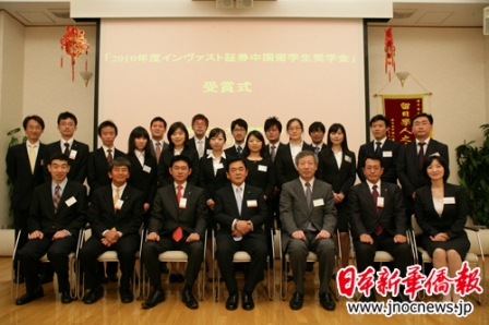 中新網(wǎng)5月18日電 據(jù)日本新華僑報網(wǎng)報道,5月15日,由日本英巴斯特證券株式會社發(fā)起的2010年度“中國留學生獎學金”頒獎儀式,在中國駐日本大使館教育處隆重舉行。中國駐日本大使館教育處公使銜參贊孫建明、日本英巴斯特證券株式會社代表取締役社長川路猛出席儀式并向獲獎中國留學生頒獎。協(xié)助本次獎學金制度的施和獲獎評選的《日本新華僑報》社社長吳曉樂、全日本中國留學生學友會的代表也出席了本次儀式。