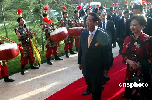 五月五日,由親民黨主席宋楚瑜率領(lǐng)的親民黨大陸訪問團抵達西安。訪問團一行首站前往大唐芙蓉園體味唐風(fēng)唐韻。作者:廖文靜