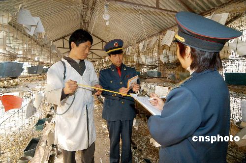 | 11月24日,安徽淮北工商部門協(xié)助當(dāng)?shù)仞B(yǎng)鴿子農(nóng)戶消毒。據(jù)悉,針對候鳥遷徙路線南移可能帶來更大范圍禽流感的狀況,國家工商總局再次發(fā)出緊急通知,要求各地工商機(jī)關(guān)發(fā)揮市場監(jiān)管職責(zé),結(jié)合當(dāng)?shù)貙?shí)際,制定禽流感防控市場監(jiān)管措施,建立24小時(shí)值班制度,并積極協(xié)助禽類養(yǎng)殖戶做好消毒、銷售等工作。作者:陳幫干