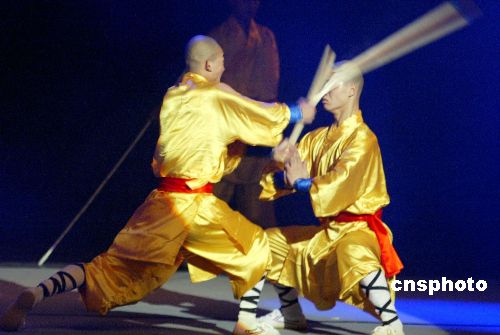 | 大型少林功夫表演秀《寺院內(nèi)外》十一月二十三日至二十五日在北京保利劇院上演。寺院內(nèi)外》表演團(tuán)由十八名少林武僧組建而成,其隊(duì)員來(lái)自少林寺僧團(tuán)和少林寺武術(shù)學(xué)校,年紀(jì)最小的僅有六歲。該劇以少林寺武僧的日常生活為主線(xiàn),以武術(shù)的形式向觀(guān)眾們演繹寺院的生活。 其中 “飯勺功”、“掃帚功”等節(jié)目把少林武僧的一些日常生活用品改編成武術(shù)舞蹈的形式,重新創(chuàng)造出一個(gè)新的功夫形式。作者:韓藝冰
