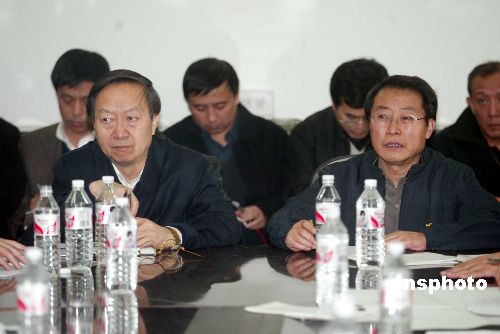 | 十一月二十八日,中國國家安全生產(chǎn)監(jiān)管總局局長李毅中(左)、黑龍江省省長張左己(右)抵達(dá)七臺河?xùn)|風(fēng)煤礦礦難現(xiàn)場,研究部署下一步的救援工作。截至二十八日二十時,東風(fēng)煤礦礦難遇難人數(shù)已飆升至一百三十四人,下落不明者十五人,另有七十二人生還。作者:武仲林