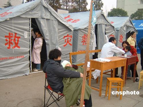 | 十一月二十九日,一名江西瑞昌市民在瑟瑟晨風(fēng)中來到該市中醫(yī)院搭建的帳篷病房,給正發(fā)高燒的女兒輸液。自二十八日起,江西地震災(zāi)區(qū)開始降溫,連續(xù)兩天外宿街頭的民眾,因睡眠不夠好、飲食不規(guī)律,身體抵抗力有所下降,感冒發(fā)燒、拉肚子等病患者有所增加,醫(yī)療機(jī)構(gòu)正全力實(shí)行救助。作者:徐金波