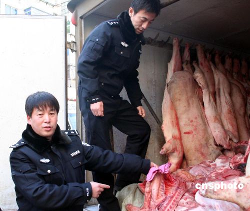 | 12月30日,沈陽市巡警支隊打假辦,接到舉報緊急出擊,當(dāng)場抓獲販賣病死豬肉犯罪嫌疑人4名,病死豬32頭和2000多公斤的分割肉共計近4000公斤。經(jīng)審查,這些豬肉販子為牟取非法利潤,在彰武縣以每斤2.5元至3元的低價收購病死豬,偷運(yùn)至沈陽某農(nóng)貿(mào)市場銷售,從中牟取暴利。目前,販賣病死豬犯罪嫌疑人已被刑事拘留。 作者:黃金昆