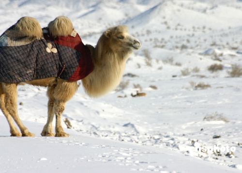 |   1月12日,駱駝穿著防寒服在雪地中覓食。新年之初,新疆阿勒泰局部地區(qū)出現(xiàn)兩次暴雪和大風(fēng)天氣,降溫幅度達(dá)到25℃。持續(xù)多日的強(qiáng)降雪造成阿勒泰地區(qū)富蘊(yùn)縣、青河縣等發(fā)生雪災(zāi),牧民為駱駝穿上了用毛氈縫制的防寒服,用來(lái)抵御寒冷和狼的侵害。作者:張文成