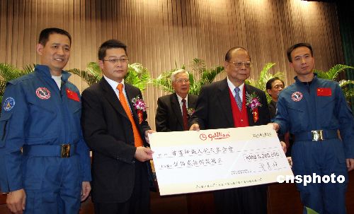 圖:“神六”航天員獲曾憲梓載人航天基金會(huì)特別貢獻(xiàn)獎(jiǎng)