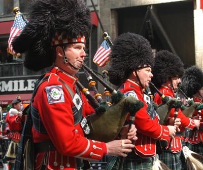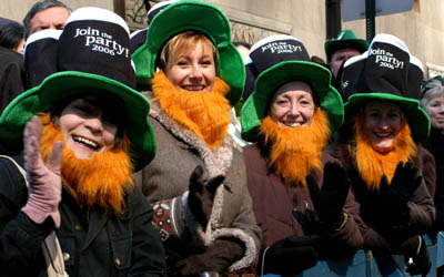 | 中新網(wǎng)紐約三月十七日電 紐約十七日舉行盛大游行,慶祝圣帕特里克節(jié)(St. Patrick’s Day)。這一節(jié)日五世紀末期起源于愛爾蘭,是為了紀念愛爾蘭守護神圣帕特里克,美國從一七三七開始慶祝。節(jié)日里,人們通常要舉行游行、教堂禮拜和聚餐等活動,美國的愛爾蘭后裔喜歡佩帶三葉苜蓿,用愛爾蘭的國旗顏色——綠黃兩色裝飾房間,身穿綠色衣服,并向賓客贈送三葉苜蓿飾物等。
