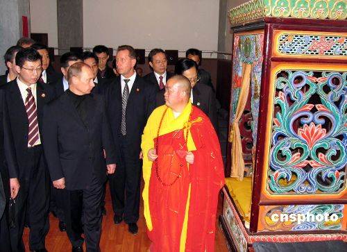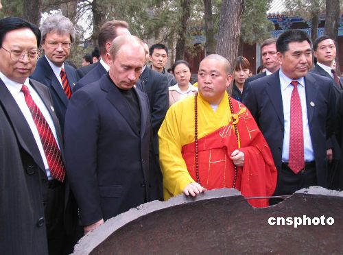 | 22日下午十五時(shí)四十分,應(yīng)中國(guó)國(guó)家主席胡錦濤邀請(qǐng),來(lái)華訪問(wèn)的俄羅斯總統(tǒng)普京抵達(dá)河南登封少林寺參觀。作者:胡珂