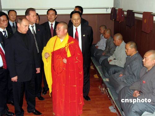 圖為普京參觀少林寺禪堂。 圖為普京總統(tǒng)觀看少林和尚坐禪。