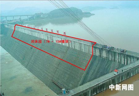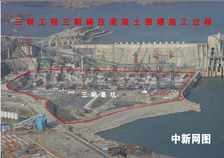 即將爆破拆除的三峽工程三期碾壓混凝土圍堰(簡稱“三期RCC圍堰”),三峽三期RCC圍堰,與下游土石圍堰一起保護右岸大壩、電站廠房及右岸非溢流壩段的施工,是實現(xiàn)三峽工程蓄水、通航、發(fā)電的關(guān)鍵性控制工程。三峽工程右岸大壩已經(jīng)于今年五月二十日全線到頂達到一百八十五米