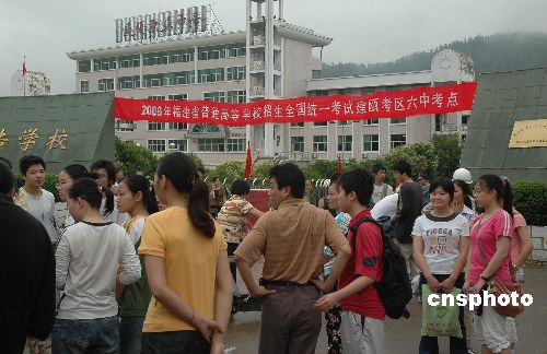 | 全國唯一的因洪災(zāi)而延期高考的福建省建甌市,6月13日重新開考。本月6日,受強降雨影響,建甌市五個考點中有三個考點被洪水所淹。經(jīng)教育部批準,該市高考改期。洪水后退后,該市全力以赴組織力量搶修毀壞的電力線路,供水系統(tǒng),清淤排障,消毒殺菌。在9日晚,該市所有考點完全具備應(yīng)考標準,經(jīng)上級批準于13、14日重新高考,試卷將啟用B卷。13日參加建甌市災(zāi)后高考復(fù)考的四千六百八十一名考生中,無一人因災(zāi)缺考。圖為13日,冒著毛毛細雨,災(zāi)后延期高考的考生就早早來到考場外等待。中新社發(fā) 魏永青 攝