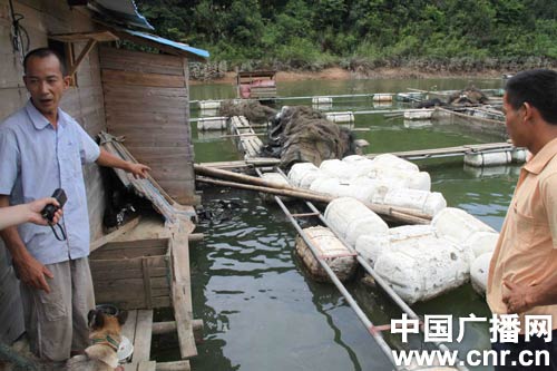 漁民丘永祿:18日開始浮頭,整個(gè)網(wǎng)箱的魚全都浮起來(lái)了,很恐怖,拼命撞(漁網(wǎng)),不吃料,我們嚇壞了。19日開始有魚死了,20日大批量,21日是真正大批量,23日一條魚看不見,我們拉網(wǎng)魚全部沉在底下。