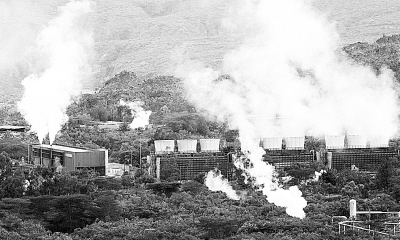 圖為肯尼亞裂谷省的歐卡瑞地?zé)犭姀S。該地?zé)犭姀S二期擴建工程目前已經(jīng)完成了70%的地?zé)峋@探工作,新的地?zé)峋A(yù)計將在兩年內(nèi)產(chǎn)生280兆瓦的電能。肯尼亞從1981年開始開發(fā)地?zé)豳Y源以來,共鉆探了33口地?zé)峋S捎诘責(zé)豳Y源不受氣候因素影響,發(fā)電價格不受國際原油價格波動的干擾,地?zé)岚l(fā)電是肯尼亞目前最便宜的發(fā)電方式?夏醽喌?zé)岚l(fā)電資源非常豐富,共有7000兆瓦的地?zé)岚l(fā)電潛力。