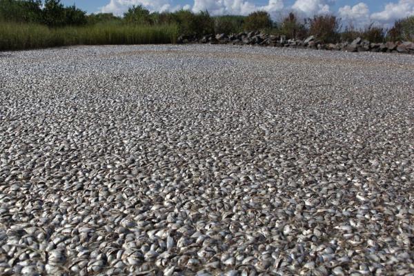 美國(guó)路易斯安那州的一片靠近墨西哥灣的水近日成了令人瞠目結(jié)舌的“死魚(yú)之!保翰挥(jì)其數(shù)的各種死魚(yú)、螃蟹和海鰻的尸體將水面蓋得嚴(yán)嚴(yán)實(shí)實(shí)。當(dāng)?shù)仉娨暸_(tái)記者甚至在這片位于密西西比河入?诘乃蛑邪l(fā)現(xiàn)了一頭鯨魚(yú)的尸體。各方因此呼吁當(dāng)?shù)卣痛苏归_(kāi)調(diào)查。