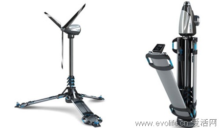 上面所展示的是一部風(fēng)力發(fā)電機(jī),但與同類產(chǎn)品的區(qū)別是——它是便攜性的,也就是說(shuō)無(wú)論到哪里都可以用。這款風(fēng)力發(fā)電機(jī)雖然還只是處于設(shè)計(jì)階段,但是如此巧妙的設(shè)計(jì)理念已經(jīng)足以讓人感興趣。