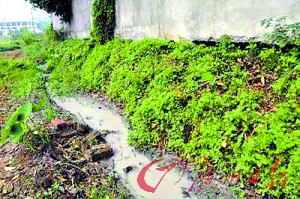 記者沿著發(fā)臭的小溪渠尋找污染源,發(fā)現(xiàn)田園間幾條水溝里的水都是前面工廠排出的污水,并且還散發(fā)著刺鼻的臭味,水呈奶白色(見圖)。