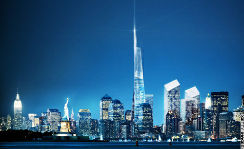 2003年11月19日:在政府截止期限前,利伯斯金和查爾斯給出了“自由之塔”的設(shè)計(jì)方案。在該方案中,辦公大樓仍然高達(dá)1776英尺,并且頂上有一個(gè)小尖頂塔。但是,本方案改變此前有棱角的設(shè)計(jì),采用了一種扭轉(zhuǎn)的造型:大廈的東西兩側(cè)隨著高度而扭曲。大廈的外部采用鋼筋網(wǎng)結(jié)構(gòu),頂部用風(fēng)力渦輪發(fā)電機(jī)為大廈提供部分能源。在本方案中,有60層樓作為辦公用途,建筑的其它部分包括一個(gè)室內(nèi)觀景臺(tái)、餐廳以及頂樓的運(yùn)動(dòng)場(chǎng)館。這個(gè)方案被稱為“充滿靈感”。