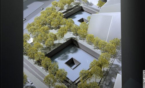 2004年1月:下曼哈頓地區(qū)開發(fā)公司公布了以色列設(shè)計(jì)師邁克爾·阿萊德的設(shè)計(jì)方案:“反思的缺乏”。這個(gè)設(shè)計(jì)方除用于紀(jì)念“9·11”事件外,還用于紀(jì)念1993年世貿(mào)大廈爆炸案。阿萊德的方案從全球5200件方案中被選中。