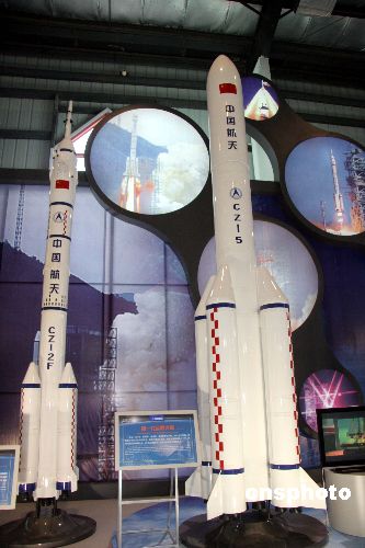中國(guó)正在研制中的新一代大推力運(yùn)載火箭模型(右)現(xiàn)身珠海航展。