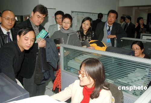 中國新聞圖片網(wǎng)絡(luò)中心主任劉莉生(前左一),向第二期海外華文媒體高級研修班學員介紹該中心的發(fā)稿情況。該中心由中新社主辦,是中國大陸目前僅有的兩家每天即時滾動播發(fā)新聞圖片的機構(gòu)之一。