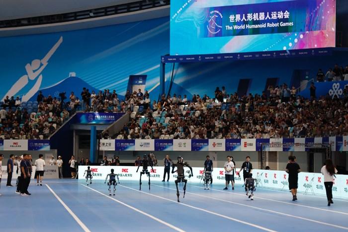 2025世界人形機(jī)器人運(yùn)動會上演“百米飛人決戰(zhàn)”