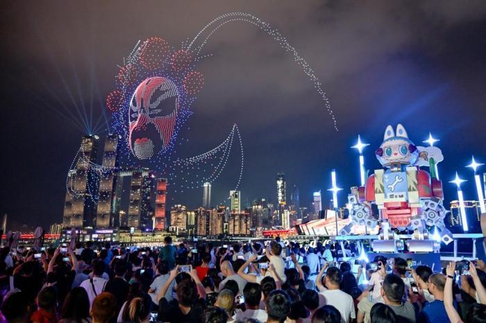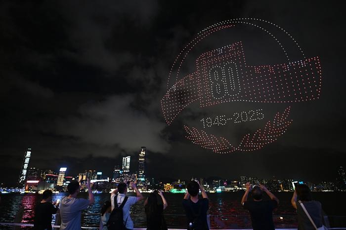 (抗戰(zhàn)勝利80周年)香港夜空升起1200架無人機(jī)紀(jì)念抗戰(zhàn)勝利80周年