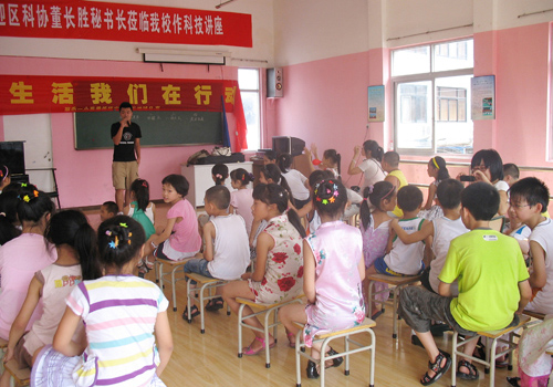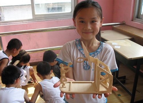 下午的時(shí)間交給了孩子們。他們先要無圖紙搭積木,即僅憑借想象力搭疊積木。“不憤不啟,不悱不發(fā)”,在關(guān)鍵時(shí)刻,隊(duì)長將示意圖紙發(fā)給了孩子們;顒(dòng)結(jié)束時(shí),還是有些孩子沒有搭出成品。隊(duì)員就鼓勵(lì)他們?cè)俳釉賲枴W詈,自由活?dòng)的時(shí)間到了,有的孩子玩“老鷹捉小雞”,有的孩子跟著女老師學(xué)起了舞蹈……
