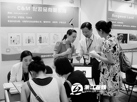 韓國韓方美人化妝品的銷售小姐告訴記者,他們的產(chǎn)品在去年已經(jīng)進入中國了,銷售情況還不錯,在這次展會上也有不少中國商家表露了合作意向。