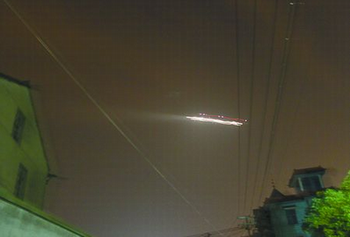 中新網(wǎng)杭州7月9日電(記者 趙曄嬌)一張浙江省杭州市蕭山機場不明飛行物的照片在網(wǎng)上瘋傳。記者今天采訪了民航愛好者,他們出示了多張“飛機外部燈光”的資料圖片,來佐證傳說中的“不明飛行物”只是一艘普通的飛機。與此同時,浙江省攝影家協(xié)會的攝影師則從純技術角度提出反對聲。