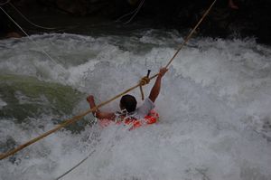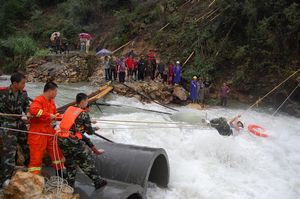 根據(jù)現(xiàn)場(chǎng)情況,救援人員迅速在被困男子上空架起一條空中繩索 一名熟悉水性的戰(zhàn)士攜帶安全繩,救生衣等救援裝備采用空中橫渡的方式到達(dá)被困人員上方。救援戰(zhàn)士首先嵌入水中將安全繩系在男子腰上,再將男子向上托起,使被困男子脫離石縫。最后在岸上救援人員一齊拉動(dòng)安全繩。下午2時(shí)30分左右,最后一名落水男子被成功救援上岸,并迅速被送往醫(yī)院搶救。
