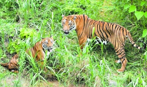 廣東省唯一的華南虎馴養(yǎng)繁殖基地——“粵北華南虎馴養(yǎng)繁殖研究中心”飼養(yǎng)的兩只國(guó)寶級(jí)成年華南虎“公主、王子”,自今年3月10日初婚洞房后,至今仍沒有懷孕跡象。昨天上午,在本報(bào)記者的見證下,研究中心決定實(shí)施第二階段的繁育試驗(yàn)——讓公主與王子雙雙再入洞房,然后零距離長(zhǎng)時(shí)間生活培養(yǎng)感情增加懷孕幾率。