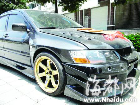 阿超指著停在他旁邊的一輛黑色的EVO跑車說,這輛車才是他的目標(biāo),可是恐怕很難跟得上,現(xiàn)在只能用一些其他車上拆下的舊件改裝。據(jù)他介紹,那輛黑色的EVO跑車屬于福州某地產(chǎn)商公子的,家里豪車無數(shù),可這位公子卻鐘情于改車玩車,在這輛EVO跑車上已投入了100多萬元,現(xiàn)在正準(zhǔn)備將車上的坐椅等物拆除,加裝防滾架,對發(fā)動機(jī)再次升級后送往北京,參加在那里舉行的賽車。