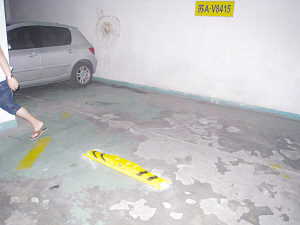 記者隨即來到大廈負二樓的停車場,一睹機械車位的芳容。“好家伙,不大的停車場里還真的停放了不少車輛!痹瓉恚瑸榱藢⑼\囄粩(shù)量發(fā)揮到最大極限,這里的停車場充分利用了樓層的空間,借助機械設備將停車場分為上下兩層,使停車數(shù)量翻了一倍。那么市民爆料的人防工程停車位在那里呢?記者注意到,在機械車位的對面地面上還停著不少輛汽車,奇怪的是,每個停車位下面都安裝了地鎖,似乎是防止別的車輛亂停亂放。 就在記者感到納悶的時候,記者抬頭突然發(fā)現(xiàn),在機械車位對面的墻體上有些人防工程的標識。