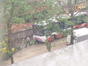 最顛的路是在土崗段和銀貢山莊段!白先ズ喼本拖褡雠鲕嚒!碑(dāng)?shù)氐木用窀嬖V記者,那兩條路“解放前就有了”,早就被軋得坑坑洼洼。駕駛員每次行駛到水坑前,都不敢過去,“我們經(jīng)常沒事就跑到附近工地?fù)焓^往里填”。駕駛員們邊開車,邊修路,可還是免不了遭殃——去年一位30多歲的女乘客坐在最后一排,一個大坑過去,這名乘客就被顛折了腰。