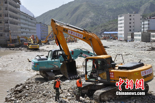 中新網(wǎng)南昌8月16日電(何柳斌 徐迎華 劉羽)8月16日,經(jīng)過駐贛武警水電二總隊官兵的晝夜奮戰(zhàn),舟曲白龍江河道疏浚加速推進,水位較8月15日下降了近1米。