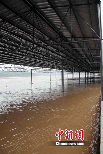 中新網(wǎng)重慶8月24日電 (杜遠(yuǎn) 連肖)新一輪洪峰今天過(guò)境重慶主城,當(dāng)?shù)匾恍┑貏?shì)低洼的地段被淹,洪水還使當(dāng)?shù)匾慌R江水果市場(chǎng)部分?jǐn)偽槐谎,讓瓜販的生意蒙受不少損失。