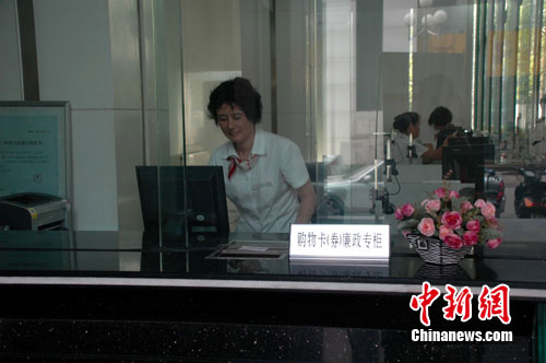 中新網(wǎng)徐州9月11日電 (記者 朱志庚) 9月10日,江蘇省徐州市舉行購物卡(券)廉政專柜啟動儀式,徐州所轄六縣市也同步啟動。徐州市區(qū)廉政專柜設(shè)在工商銀行徐州分行大同街營業(yè)部。據(jù)該營業(yè)部王經(jīng)理介紹,今天上午,已有一位女士到這里交了一張大面額的金地百貨購物卡。