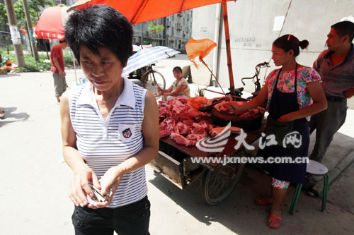 “我當(dāng)時(shí)被嚇壞了,不過(guò)他后來(lái)說(shuō)不會(huì)傷害我,我才松了口氣。”被挾持的婦女是小區(qū)居民,叫李菊香。因剛添了孫子,李菊香昨日早早起床買(mǎi)菜,準(zhǔn)備招待親戚。李菊香剛到豬肉攤旁買(mǎi)肉,胡某突然從身后將她扣住,用刀架在她的脖子上。李菊香嚇壞了,問(wèn)胡某什么事。胡某說(shuō),他被人騙來(lái)搞傳銷(xiāo),處境很危險(xiǎn)。他挾持她,只是希望引來(lái)民警,幫他逃離傳銷(xiāo)。李菊香覺(jué)得他不像說(shuō)謊,放松了一些,周?chē)用窆挥腥藞?bào)了警。