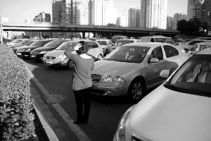 “都是領(lǐng)月餅的!苯煌▍f(xié)管員稱,從早上開始,有人因到富力廣場領(lǐng)取月餅,將車停在路邊,后來車輛也一一效法,便開始亂停。