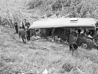 傷勢較輕的乘客楊先生回憶說,早上9點(diǎn)多,該中巴車滿載乘客從海石灣出發(fā),大約十多分鐘后,車行駛到旋子村段。這時(shí),前面突然來了一輛車,在會(huì)車過程中,中巴車司機(jī)朝右打了方向盤。由于下雨路滑,客車竟沖過護(hù)欄沿斜坡向玉米地沖了下去,車上乘客嚇得大叫,后來他就什么也不知道了。當(dāng)他反應(yīng)過來時(shí),只見車頂不見了,車身倒在玉米地內(nèi),現(xiàn)場亂作一團(tuán)。有的乘客從車窗里爬了出來,傷勢較輕的乘客還主動(dòng)營救重傷員,大家用手機(jī)撥打120和110求援。