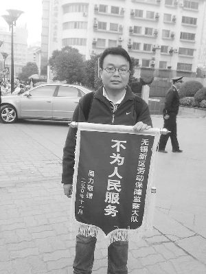 他否認(rèn)送一面“不為人民服務(wù)”的錦旗是為自己與原公司的勞動(dòng)糾紛一案造勢(shì)。他說(shuō)他的訴求很簡(jiǎn)單,就是希望政府能夠?qū)υ镜倪`法行為予以處罰。
