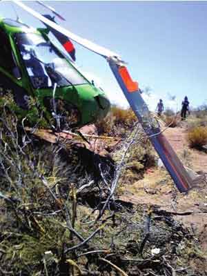 在第4賽段,央視的直升機(jī)對(duì)盧寧軍的賽車進(jìn)行跟蹤航拍,結(jié)果直升機(jī)在30米高空中突然出現(xiàn)故障,飛機(jī)呈自由落體墜地,當(dāng)時(shí)工作人員迅速上前解救,幫助航拍的記者逃離了飛機(jī)。飛機(jī)墜地后,后翼和螺旋槳都已經(jīng)損壞,萬幸的是沒有人員傷亡。