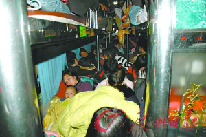 公路客運高峰昨日殺到,記者從省公安廳交通管理局獲悉,春運總體形勢平穩(wěn),但春運道路安全形勢不容樂觀,省內(nèi)交警部門在路面執(zhí)勤中連續(xù)查處嚴重超載行為,最離譜的客車核載39人,竟塞進了101人。而且還出現(xiàn)了超載客車相互串通、聯(lián)合闖關(guān)等情況,甚至有些無良司機為躲避檢查,在經(jīng)過檢查點時將乘客塞入行李廂。省交管局重申,超載行為是今年春運交通檢查的重點,除了對車上乘客進行檢查,客車行李廂也是檢查重點。