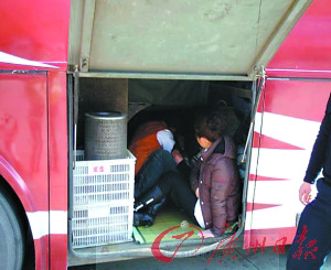 1月13日上午11時,東莞麻涌春運執(zhí)勤點執(zhí)勤民警對一輛號牌為湘F06266的客車進行例行檢查發(fā)現(xiàn),該車的行李廂有異樣,打開一看行李廂中竟藏了一個大活人。客車司機卻表示不知道這個人何時上車。經(jīng)過對司機和藏匿乘客的訊問,司機王某某終于承認自己為賺取路費甘愿冒險。