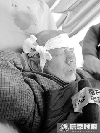 搭乘36路車的黃叔在家人陪伴中接受治療,他說:“我在黃石路總站上的車,往南開接近盈翠華庭公交站時,突然發(fā)現(xiàn)當班司機開快車,飛越該站后又加大油門,我也是司機,估計當時時速達80公里以上,按經(jīng)驗感覺到肯定會出事,就緊緊握緊座椅扶手,司機飛站后不久,就在柯子嶺公交站附近撞上66路,我眼部受了傷,醫(yī)生給縫了8針,幸運沒被撞個腦震蕩,否則這個年齡就慘啦!”