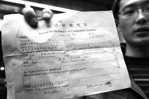 “我覺(jué)得銀行應(yīng)該有責(zé)任!眲⑾壬f(shuō),這是第一次從自動(dòng)取款機(jī)上取到假鈔。昨日,銀行經(jīng)理告訴他,以銀行的技術(shù)不可能出現(xiàn)這種問(wèn)題,并將劉先生的假鈔收繳了。 (記者 葉婧)